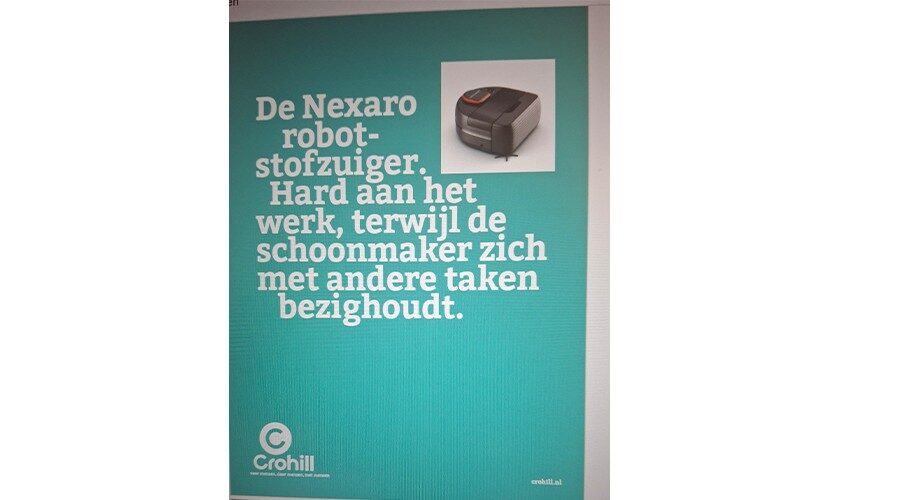Werken met een robot in de schoonmaak? Dat klinkt futuristisch, maar bij SIEV-partner groothandel Crohill is het al dagelijkse realiteit. Na een reeks grondige tests met de Duitse Nexaro 1700 robotstofzuiger zijn zowel directeur Pim Hilgerdenaar als Gerard Buis van schoonmaakbedrijf Vastenburg uit Hoorn overtuigd: deze robot is geen speeltje, maar een serieuze ‘collega’.