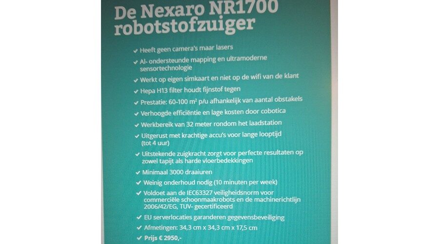 Kortom: de schoonmaakrobot is niet langer toekomstmuziek. Met de Nexaro 1700 haalt de branche een stille kracht in huis die niet alleen stof, maar ook weerstand wegzuigt.